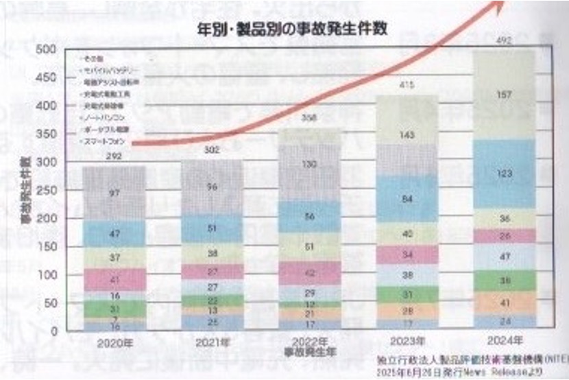 加速劣化実験及びペロブスカイト太陽電池の規格対応については、冒頭のリチュウムイオン電池の問題と同じく、形だけ整えて市場に出して市場形成してしまえば、基準は後からついてくる。この姿勢で市場を形成したモバイルバッテリーやEV市場では電池からの発火事故が多発している。
