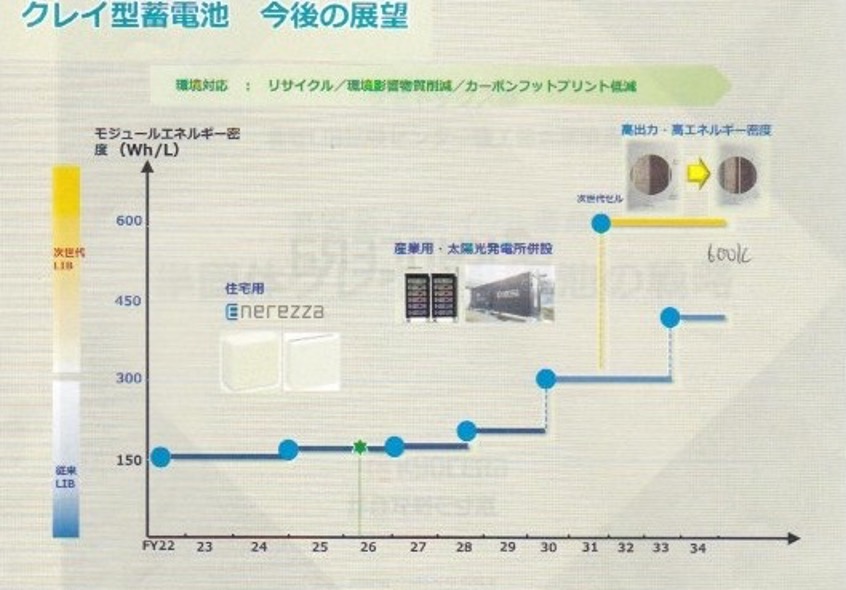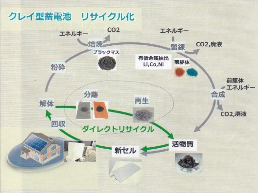 ダイレクトリサイクルが可能で、クレイ型蓄電池の特徴でもあり、環境負荷を従来の蓄電池システムより大幅に軽減できるとしていました。👏