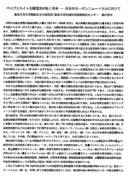 ペロブスカイト太陽電池が拓く ー 日本のカーボンニュートラルに向けて