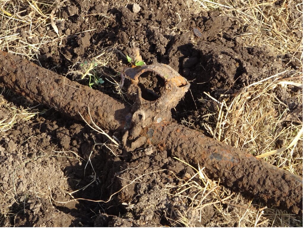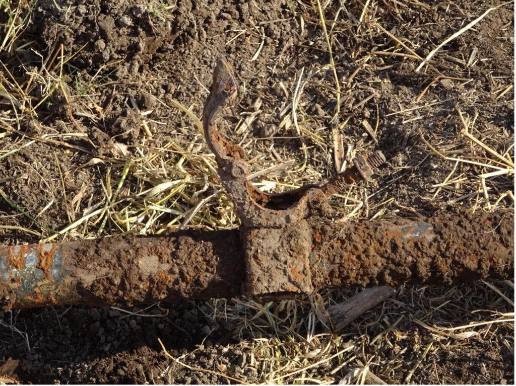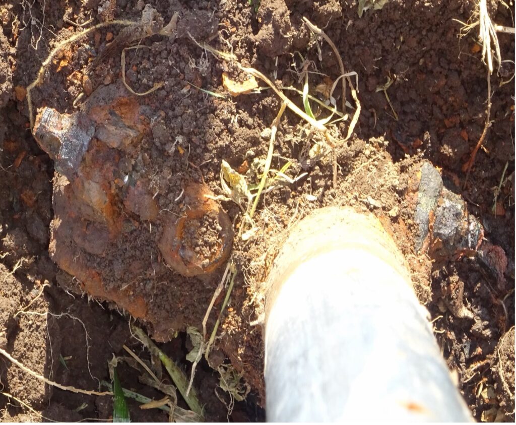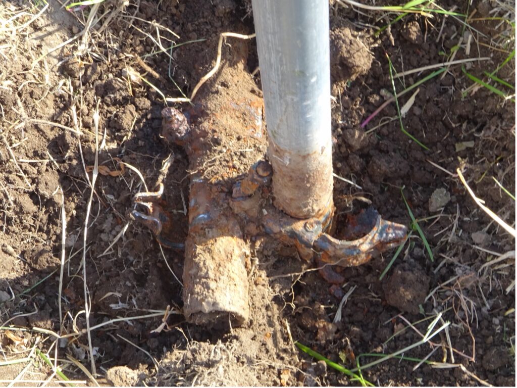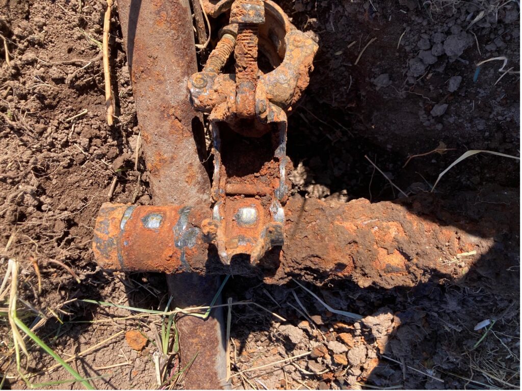 地中の中にあっても、ナット部分の錆が殴打により剥げ落ちて、クランプネジを緩ませることができたものと、錆の成長が激しく痩せてしまっているクランプがあり、同じ地中でこうも違うものかと、驚きました。