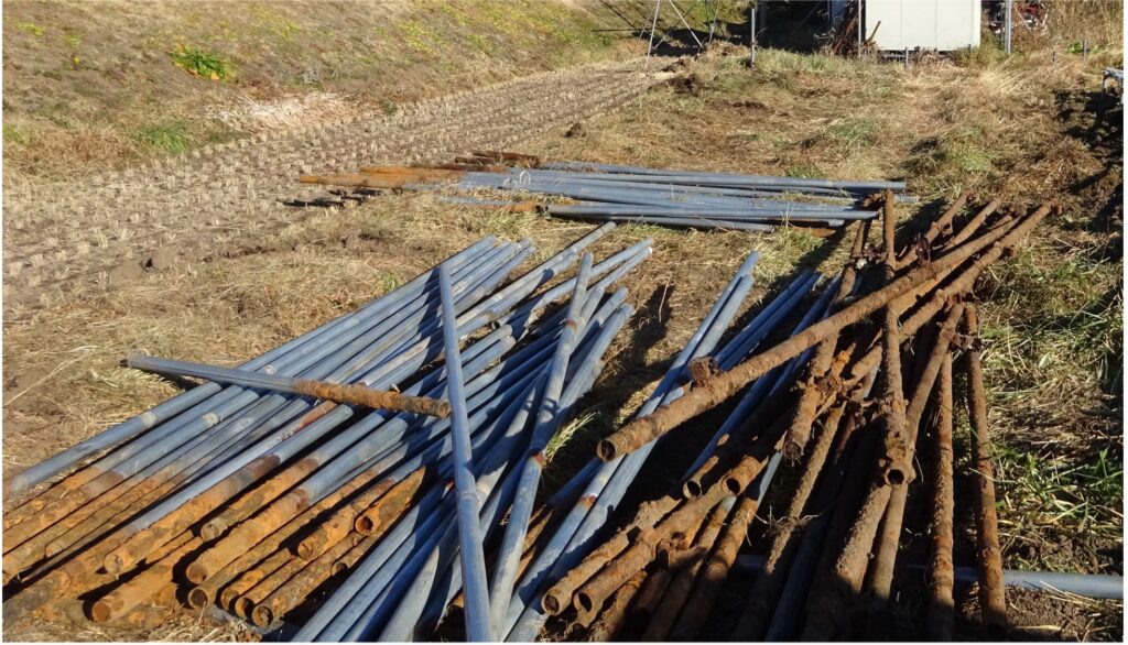 こちらは、単管パイプ太陽電池架台を撤去後、集めた写真になります。