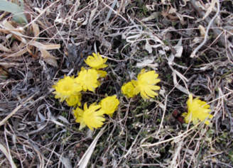 母が、ショートステーに行く日の庭には、福寿草が咲いていた。