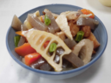 丁度、帰宅時には、ワラビの卵とじ、季節は初夏 ハチクの煮付け。