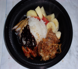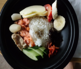 母は、お弁当容器に入っている食材の一部を、少しずつ残して、取って置き
