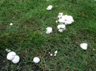 翌日には、残骸が芝生に転がっていました。(ノウタケ・ソウメンタケ)