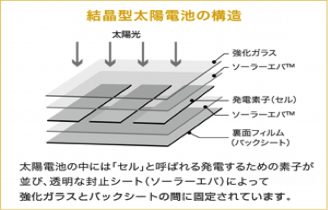 ここまでで、太陽電池パネルの構造はお分かりいただけたと思います。