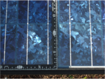 単結晶、多結晶とも同じ会社のEVフィルムを使用した結果、出力低下に繋がる症状が見られました。単結晶側では、EVフィルムをガラスと接合時に使用した酸化剤の影響で、表面皮膜の剥離や浸食が発生し、多結晶側では、EVフィルムの剥離が発生致しました。これらは、後に電極から発生するイオンではないかと疑われましたが、使用したEVフィルムを変え、ラミネート時の温度管理や行程を見直すことで、これらの症状は治まり、大きな問題には至りませんでした。これは、コスト競争から、製造過程での処理工程から発生したことですが、これらの経験から、一部のメーカーは、シリコン太陽電池の将来性に疑問を感じ、アモルファスや化合物太陽電池に開発に繋がって行くのです。