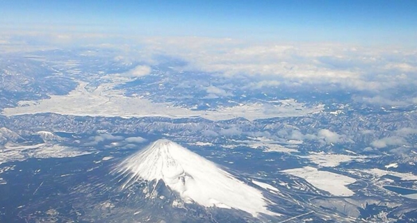 降雪後2日ほど経ったところで、甲府盆地が雪に埋もれた湖のように見えます。
