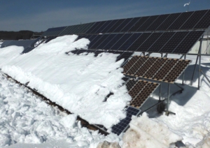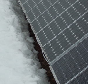 太陽電池に、一定の勾配を付けて設置してあり、雪の自重により発生する滑り抵抗のおかげで、積雪が50㎝を超えた場合と、気温がプラスの3度以上になった場合に
