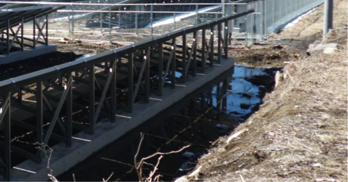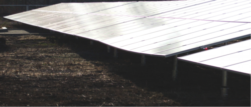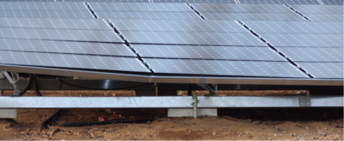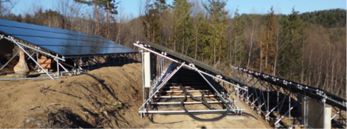 こちらは、置基礎の面積が小さいために、豪雪の影響を受けて、太陽電池架台が歪んでしまったようすです。