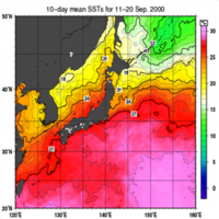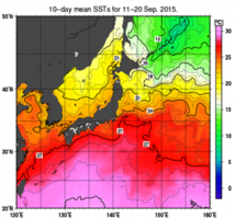 話を戻し、海面温度の高温域の拡大と共にそれらに伴う海面温度の上昇を考えてみたいと思います。