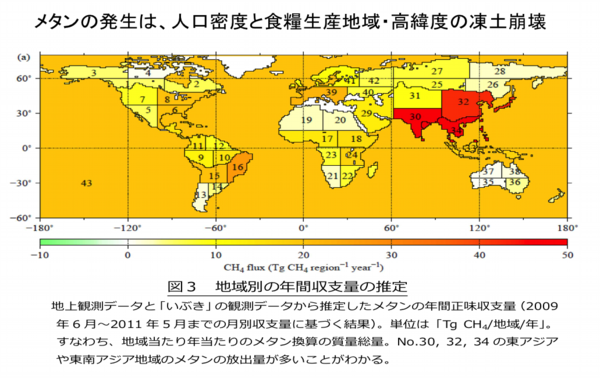 これと、日本の大気観測衛星「いぶき」(温室効果ガス観測衛星)の観測データを見ると、以下のように発表されている。