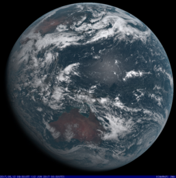 大陸には、くっきりと赤茶けた砂漠が確認できる。この乾燥が北半球で広がって行くのか、はたまた、緑の草原に変わるのかによって、日本周辺の海洋気候も変動するのだろうと思われるが、地球温暖化は、確実に進行していることが、季節感を狂わせる気候から読み取ることができる。