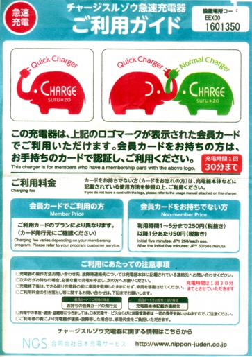 公共の充電スタンド(とうめんの間、無料)が市役所、道の駅、等4ヶ所