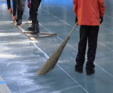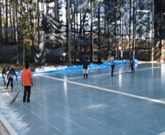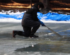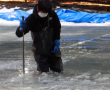 氷プールの中を竹ざおを使って、移動、そこからが大変。