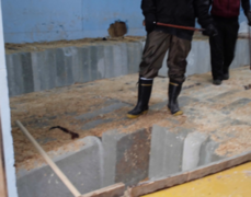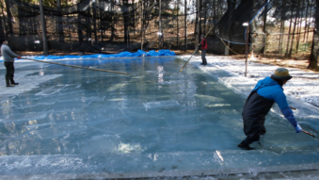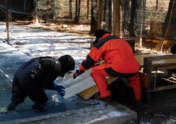 プールから約40㎏の氷を持ち上げて、シュートで氷室へ