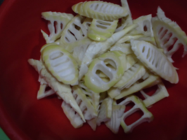 皮をむき、黄色い部分だけを食材として使用します。緑色に変わっている