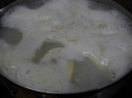 急いで、皮を剥き、劣化(アクを増える)を防ぐために