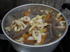 野菜は、人参、玉ねぎ・それにコンニャク、