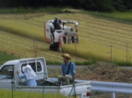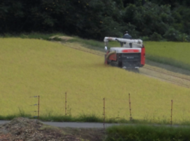 外では、 稲刈りが始まった。 ・・・? まだ8月だよね !