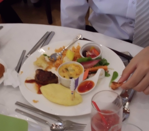 お子様プレートに、なぜか、二十歳過ぎの甥っ子が? スープの写真忘れてる。